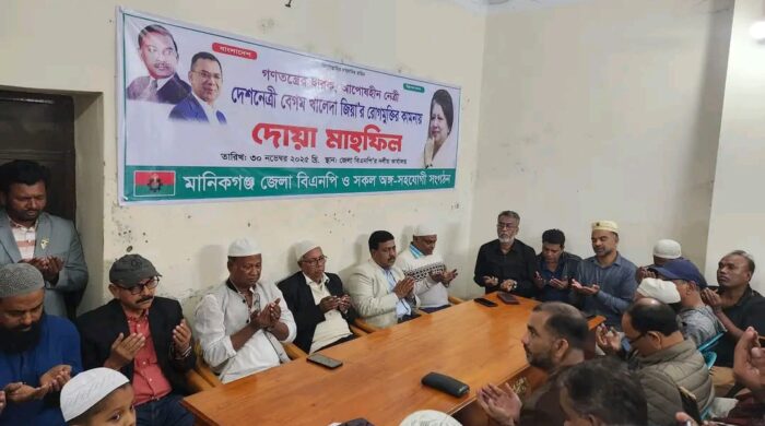 দেশনেত্রী বেগম খালেদা জিয়ার রোগমুক্তি ও দীর্ঘায়ু কামনায় মানিকগঞ্জে দোয়া মাহফিল অনুষ্ঠিত। বিস্তারিত