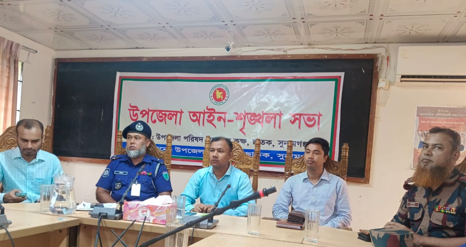 ছাতকে উপজেলা আইন-শৃঙ্খলা কমিটির সভায় নদী পথে দীর্ঘদিনের চাঁদাবাজি জিরো টলারেন্সে নিয়ে আসার সিদ্ধান্ত নেয়া হয়েছে। বৃহস্পতিবার সকালে উপজেলা কনফারেন্স হলে ইউএনও তরিকুল ইসলামের সভাপতিত্বে অনুষ্ঠিত সভায় সর্বসম্মতিক্রমে নদী পথে চাঁদাবাজি জিরো টলারেন্সে নিয়ে আসা, মাদক ও চোরাচালান রোধ, টিলা কেটে পাথর সংগ্রহ ও অবৈধ বালু উত্তোলন বন্ধ করন, শহরে অসহনীয় যানযট নিরসন কল্পে ট্রাফিক ব্যবস্হা জোরদার, দ্রব্যমূল্য নিয়ন্ত্রণসহ বিভিন্ন অপরাধ দমনে উপজেলার মফস্বল এলাকার হাটবাজারে নিয়মিত মোবাইল কোর্ট পরিচালনা, জাউয়া বাজার ও জাহিদপুর পুলিশ তদন্ত কেন্দ্রের কার্যক্রমে থানার অফিসার ইনচার্জের নিয়মিত মনিটরিং জোরদার, গরু চুরি ও ছিনতাই রোধে কার্যকর ব্যবস্হা গ্রহন, আসন্ন দুর্গাপূজা নির্বিঘ্নে উদযাপনে বিভিন্ন পদক্ষেপ গ্রহন ইত্যাদি বিষয়ে সিদ্ধান্ত গৃহীত হয়। নবাগত অফিসার ইনচার্জ (ওসি) মোঃ শফিকুল ইসলাম খান তার বক্তব্যে কঠোর হস্তে আইন-শৃঙ্খলা নিয়ন্ত্রণে রাখার দৃঢ় প্রত্যয় ব্যক্ত করেন। সভাপতির বক্তব্যে ইউএনও তরিকুল ইসলাম বলেন সবার সহযোগিতা পেলে ছাতক উপজেলাকে একটি মডেল উপজেলা হিসাবে প্রতিষ্ঠিত করা হবে। সভায় বক্তব্য রাখেন, বীর মুক্তিযোদ্বা গোলাম মোস্তফা, উপজেলা বিএনপির আহবায়ক মোঃ ফরিদ উদ্দিন আহমদ,যুগ্ম আহবায়ক ফজলুল করিম বকুল ও আবু হুরায়রা ছুরত, সাবেক সভাপতি ফারুক আহমদ , জামায়াত নেতা হাফিজ জাকির আহমদ, বাংলাদেশ খেলাফত মজলিস নেতা মাওঃ ফজলুর রহমান, ছাতক প্রেস ক্লাব সভাপতি সৈয়দ হারুন অর রশীদ, সাধারণ সম্পাদক আব্দুল আলিম, সাংবাদিক আনোয়ার হোসেন রনি প্রমুখ।