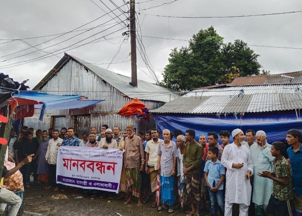 সুনামগঞ্জের শান্তিগঞ্জ উপজেলার পাথারিয়া বাজারে পাথারিয়া গ্রামের লন্ডন প্রবাসী সামছুল ইসলাম (রাজা) কর্তৃক সরকারী জায়গা ও বিদ্যুৎ এর খুঁটি ঘুরের ভেতরে ঢুকিয়ে ঘর নির্মাণের প্রতিবাদে ও দোষীদের গ্রেফতারের দাবিতে মানববন্ধন অনুষ্ঠিত হয়েছে।