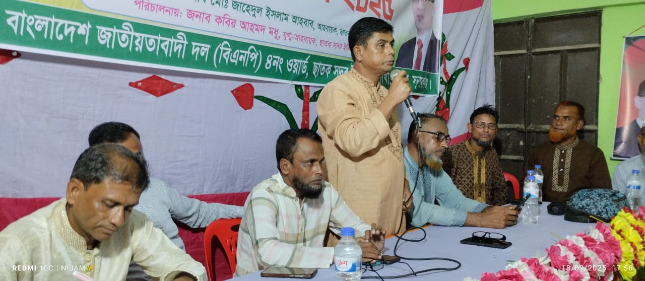 ছাতক উপজেলার ছাতক সদর ইউনিয়নে বাংলাদেশ জাতীয়তাবাদী দল বিএনপির ০৩ নং ওয়ার্ড সম্মেলন অনুষ্টিত হয়। (১৮ সেপ্টেম্বর) বৃহস্পতিবার বিকেলে ছাতক সদর ইউনিয়নের কাজীহাটা গ্রাম আয়োজিত ৪ নং ওয়ার্ড কমিটি গঠন উপলক্ষে এ সম্মেলন অনুষ্ঠিত হয়। বুধবার বিকেলে ছাতক সদর ইউনিয়নে কাজীহাটা পয়েন্টে ইউনিয়নের এ সম্মেলনে ইউনিয়ন বিএনপির আহবায়ক জাহেদুল ইসলাম আহবাব'র সভাপতিত্বে ও যুগ্ম আহবায়ক কবির আহমদ মধুর পরিচালনায় সভায় বক্তব্য রাখেন ইউনিয়ন বিএনপির আহবায়ক কমিটির সদস্য কুতুব উদ্দিন, ইয়াকুব আলী মাষ্টার, নুরুল হক, আব্দুল আমিন, তাজুল ইসলাম তালুকদার, মানিক মিয়া, সাবেক মেম্বার খায়রুল ইসলাম, হেলাল আহমদ, নুর উদ্দিন, স্হানীয় ওয়ার্ড বিএনপির সদস্য ছদরুল কবির মজনু, আব্দুস সোবহান, আক্তার হোসেন, ছাত্রদল নেতা আমজাদ হোসেন সহ বিএনপি, যুবদল, ছাত্রদল, কৃষক দল, স্বেচ্ছাসেবক দলের নেতাকর্মীরা উপস্থিত ছিলেন। সম্মেলনে পবিত্র কোরআন থেকে তেলওয়াত করেন ওয়ার্ড বিএনপির সদস্য ফারুক আহমেদ।