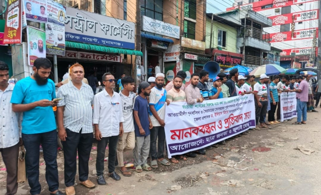 সুনামগঞ্জ জেলা প্রশাসকের অপসারণের দাবীতে ছাত্রজনতার উদ্যোগে মানববন্ধন অনুষ্ঠিত