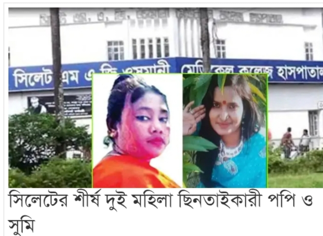 সিলেটের শীর্ষ দুই মহিলা ছিনতাইকারী পপি ও সুমি দীর্ঘদিনের দাগী নারী মোবাইলফোন চোরেরসর্দার পপিচক্র পুলিশকে টাকা দিয়ে চোরদের হাসপাতালে প্রবেশ করিয়ে দিচ্ছে। আর এই চোর চক্রকে নিয়ন্ত্রণ করছে বাইরের একটি চক্র