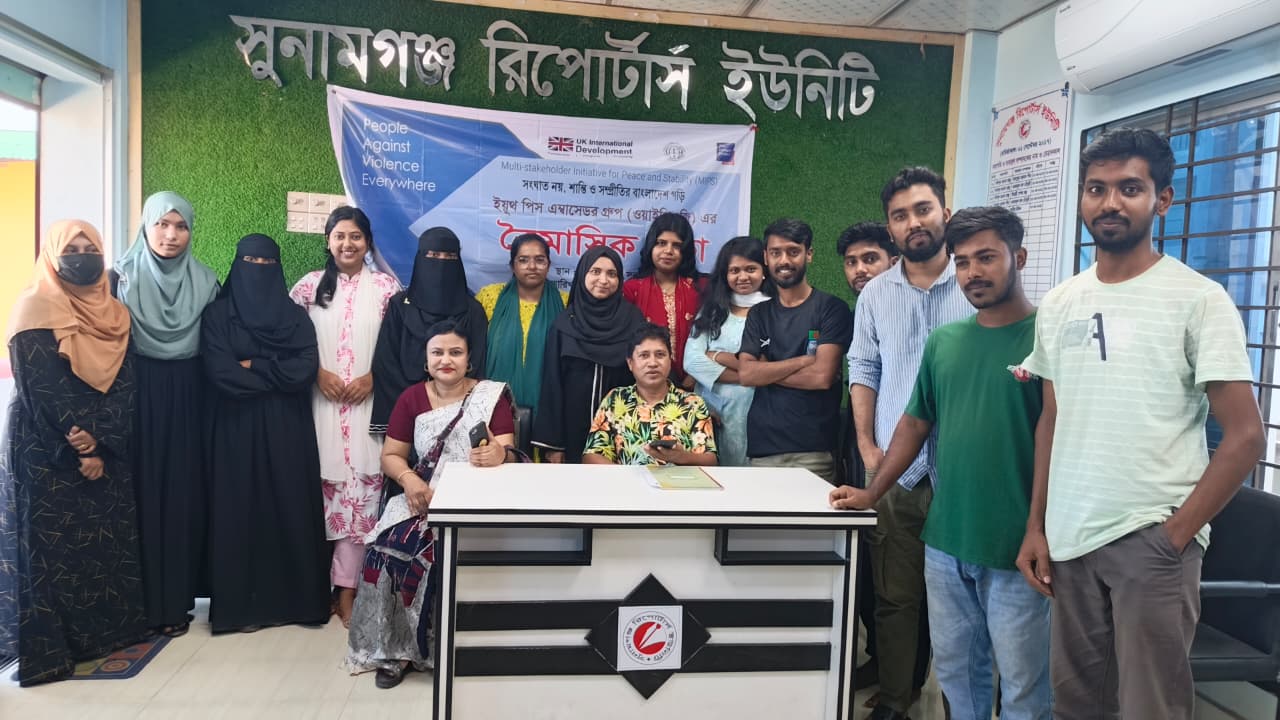 মঙ্গলবার সকালে সুনামগঞ্জ রিপোর্টার্স ইউনিটি হলরুমে এই সভা অনুষ্ঠিত হয়। ওয়াই পিএজির ওয়াইপিএজি সদস্য সাকিব আহমদ এর সভাপতিত্বে সভায় প্রধান অতিথি হিসেবে উপস্থিত ছিলেন সুনামগঞ্জ সদর পিএফজির নারী পিস এ্যাম্বাসেডর শাহীনা চৌধুরী রুব