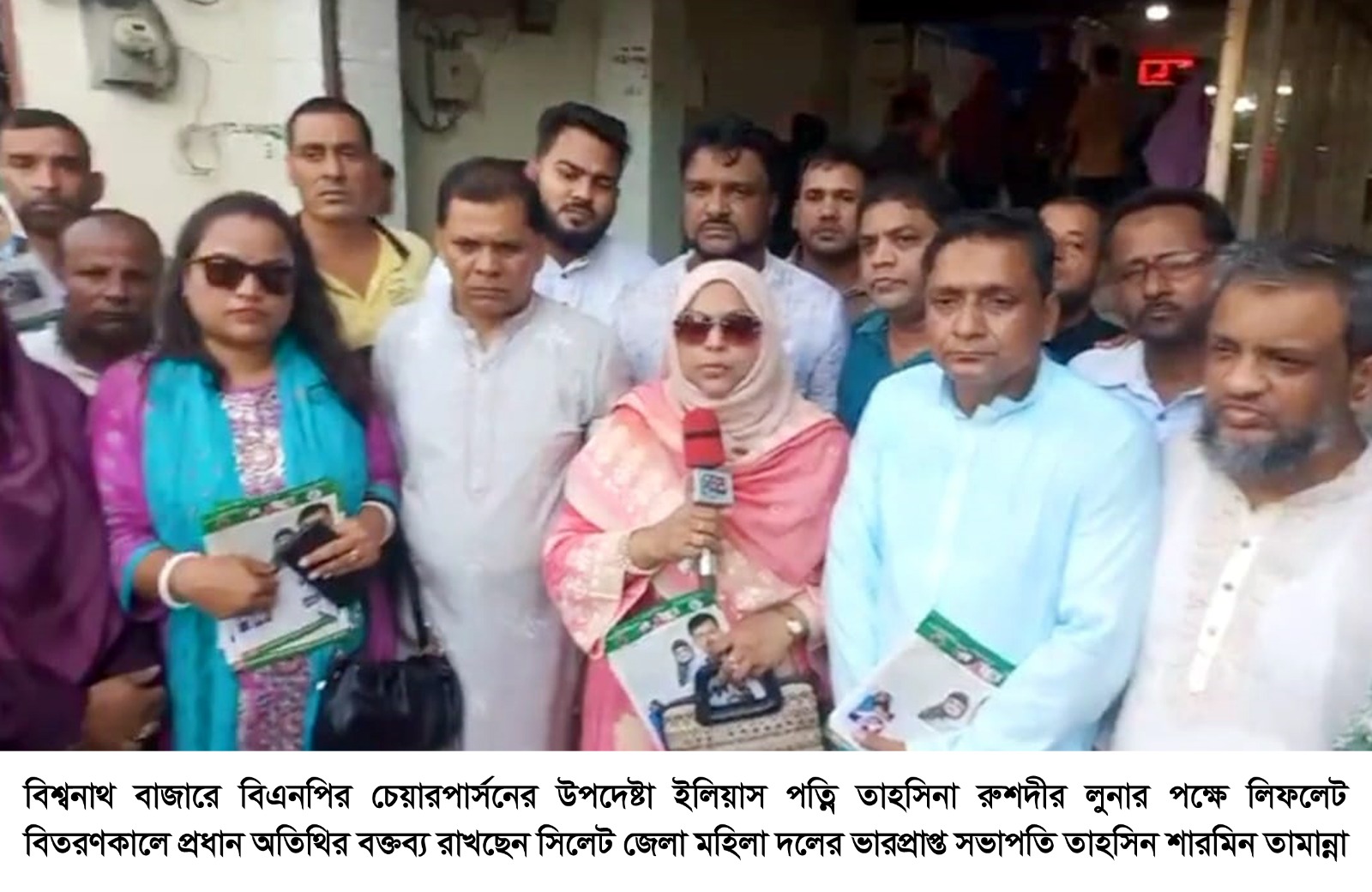 বিশ্বনাথে তাহসিনা রুশদীর লুনার পক্ষে লিফলেট বিতরণদেশনায়ক তারেক রহমানের নেতৃত্বে জনগণের অধিকার পুনরুদ্ধারে সবাইকে ঐক্যবদ্ধ হতে হবে ----তাহসিন শারমিন তামান্না