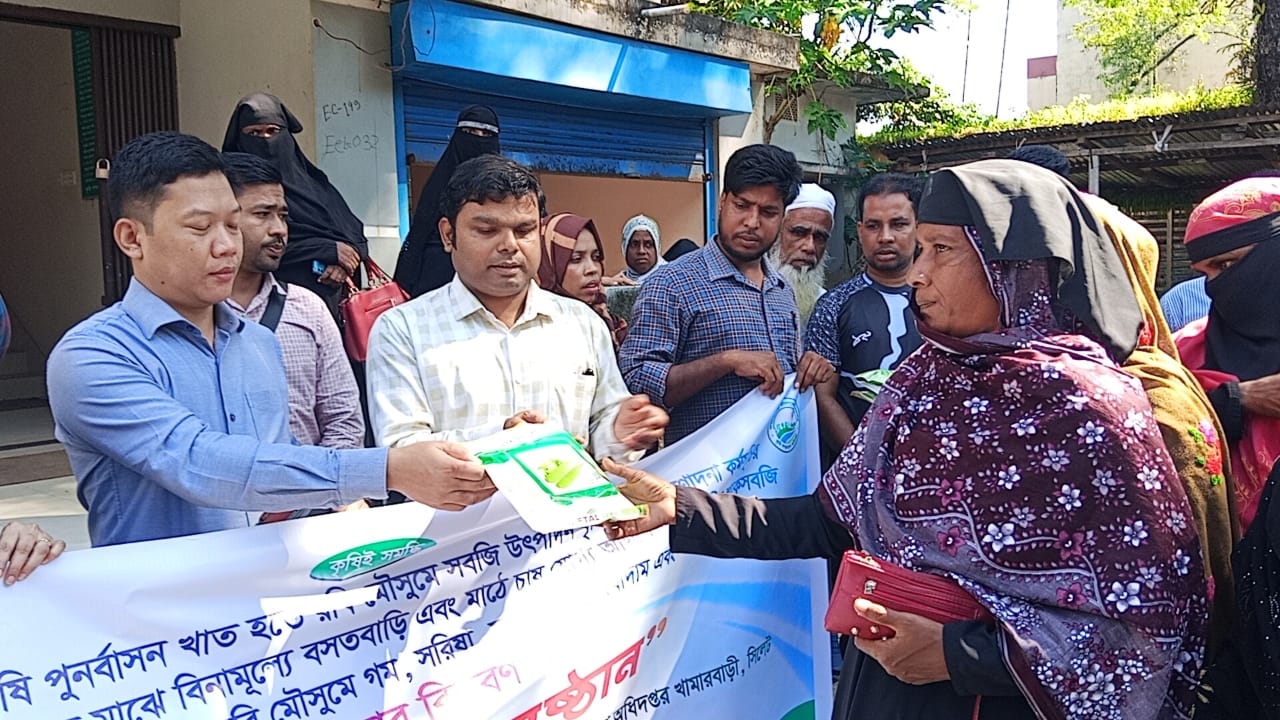জৈন্তাপুরে কৃষি সম্প্রসারণ অধিদপ্তরের আয়োজনে কৃষকদের মাঝে বিনামূল্যে বীজ সার প্রণোদনা কর্মসূচির উদ্বোধন।
