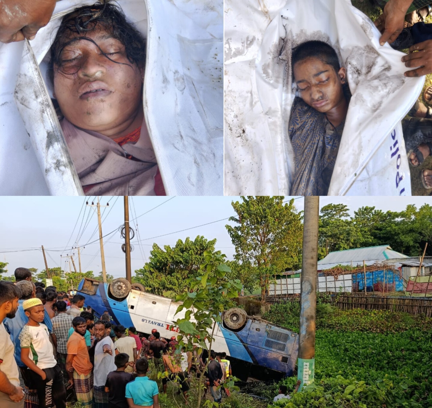 সুনামগঞ্জের পাগলা এলাকায় ঢাকাইয়া বাস উল্টে খাদে পড়ে মা ও মেয়ে ২জন নিহত, আহত ১০ জন