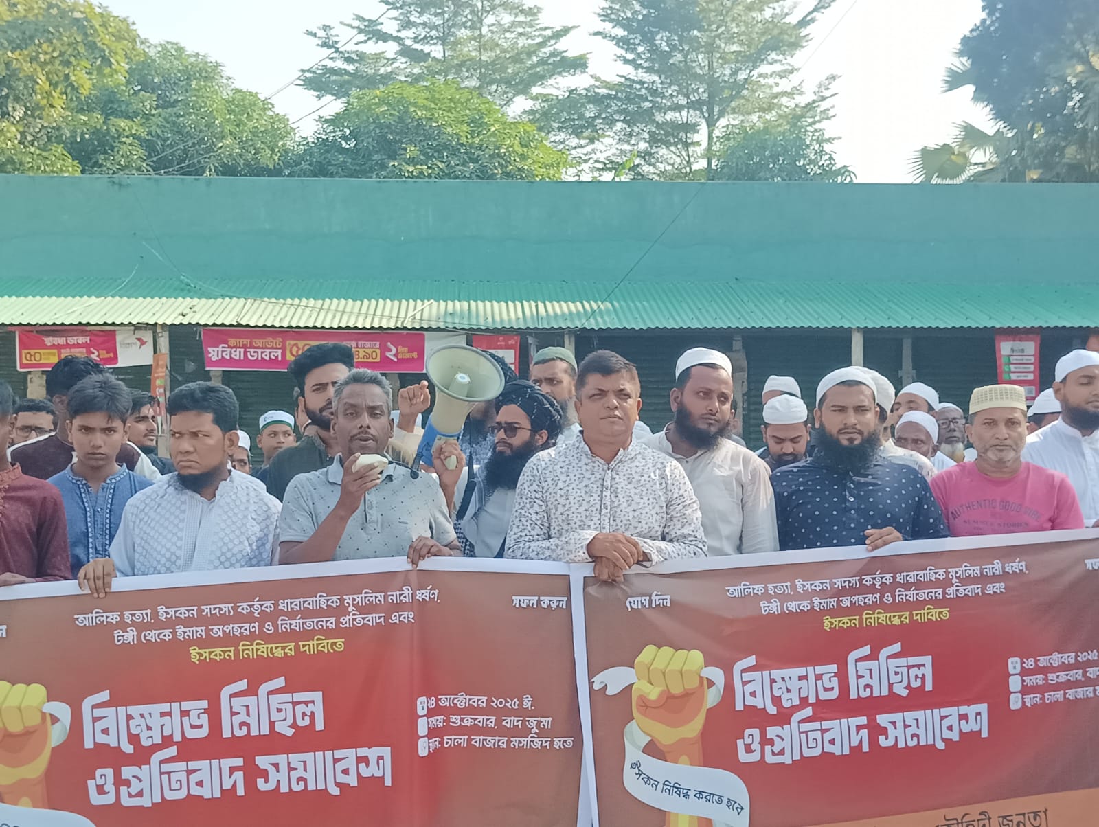হরিরামপুরে ইসকন নিষিদ্ধের দাবিতে বিক্ষোভ মিছিল ও প্রতিবাদ সমাবেশ।