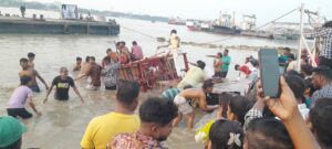 কলকাতার বাবুঘাটে চলছে, জাগ্রত চামুন্ডা কালী সহ অন্যান্য কালী প্রতিমার বিসর্জন।