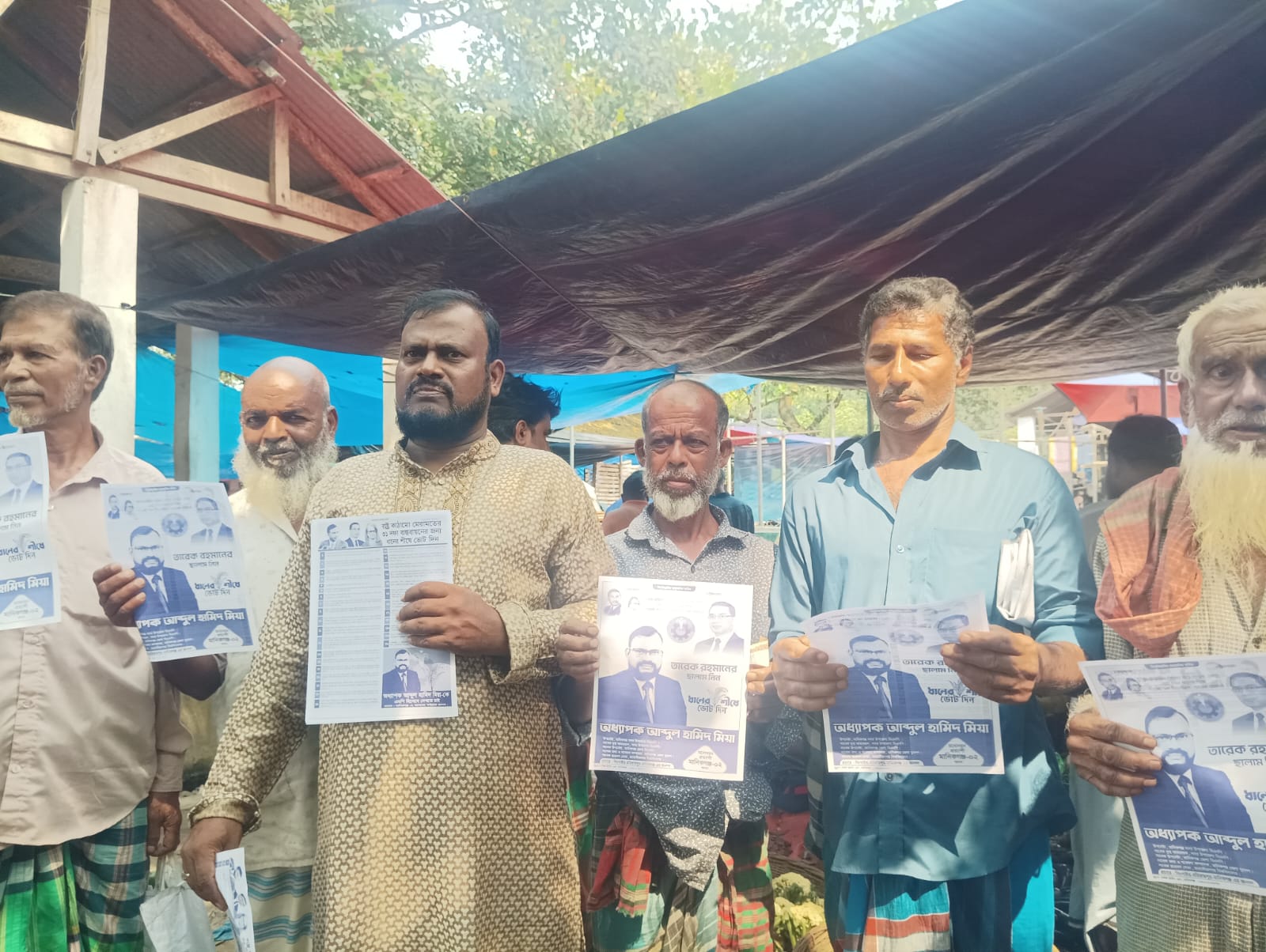 হরিরামপুরে অধ্যাপক আব্দুল হামিদ মিয়ার পক্ষ হতে ৩১দফার লিফলেট বিতরণ।