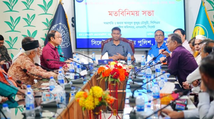 সিলেট পুলিশ কমিশনার জনাব আবদুল কুদ্দুছ চৌধুরী, পিপিএম এর মতবিনিময় সভা অনুষ্ঠিত হয়। স্টাফ রিপোর্টার:: সিলেটমেট্রোপলিটন এলাকায় অবস্থিত বিভিন্ন সরকারি/বেসরকারি বিশ্ববিদ্যালয়সমূহের ভিসি/প্রক্টর এবং মেডিকেল ও কলেজসমূহের অধ্যক্ষগনের সাথে মতবিনিময়