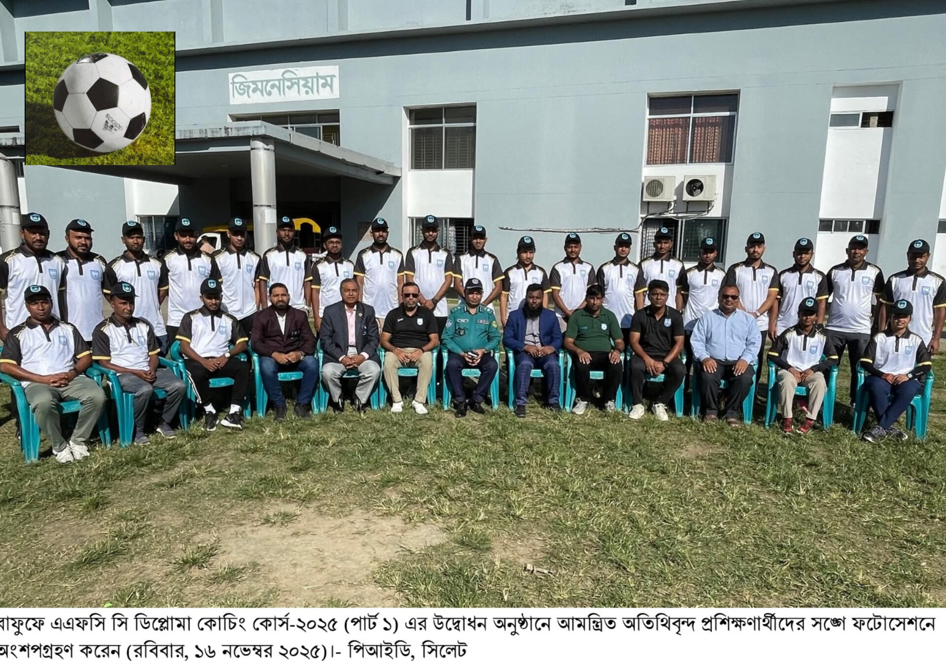 প্রতিভাবান তরুণ খেলোয়াড় সৃষ্টিসহ দেশের ফুটবলের উন্নয়নের লক্ষ্যে বাংলাদেশ ফুটবল ফেডারেশন (বাফুফে)- এর উদ্যোগে ১৬ নভেম্বর রবিবার সকাল ১০ টায় সিলেট বিভাগীয় ক্রীড়া কমপ্লেক্সের জিমনেসিয়াম ভবনে তৃণমূল পর্যায়ে কর্মরত প্রশিক্ষকদের উন্নত প্রশিক্ষণ প্রদানের জন্য সিলেট বিভাগের চারটি জেলা সিলেট, মৌলভীবাজার, হবিগঞ্জ ও সুনামগঞ্জের বাফুফে সি লাইসেন্সপ্রাপ্ত ২৪ জন প্রশিক্ষকের অংশগ্রহণে বাফুফে এএফসি সি ডিপ্লোমা কোচিং কোর্স-২০২৫ (পার্ট ১) এর উদ্বোধন করে।