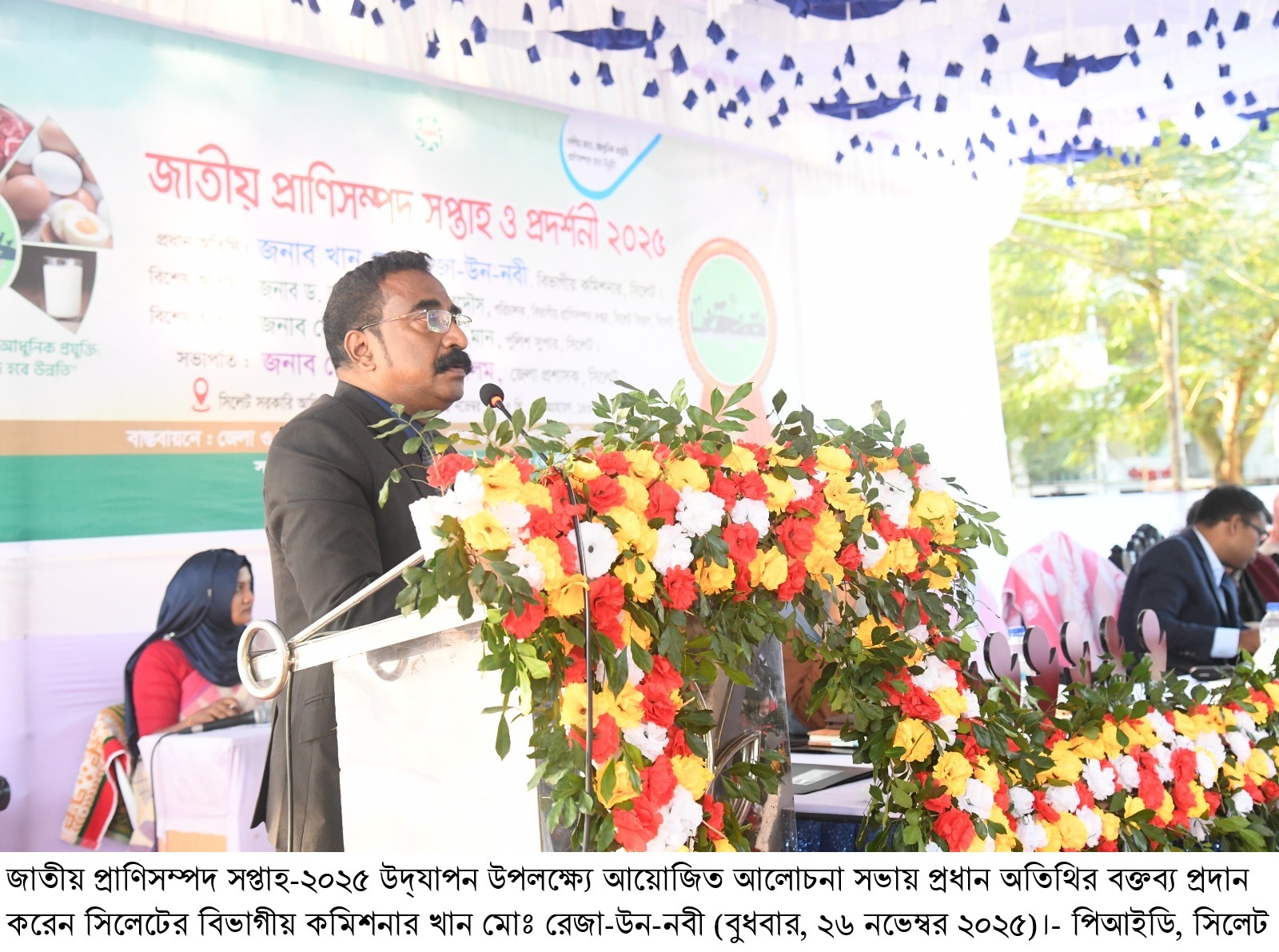 এ উপলক্ষ্যে সিলেটের জেলা প্রশাসক মো. সারওয়ার আলমের সভাপতিত্বে আয়োজিত আলোচনা সভায় প্রধান অতিথি ছিলেন সিলেটের বিভাগীয় কমিশনার খান মো. রেজা-উন-নবী। তিনি তার বক্তব্যে বলেন, প্রাণিসম্পদের উন্নয়ন হলে খামারির উন্নয়ন হবে। এতে জাতীয় অর্থনীতিতে খামারি তথা প্রাণিসম্পদের অবদান বৃদ্ধি পাবে। তিনি আরো বলেন, আত্মকর্মসংস্থানের অন্যতম একটি খাত হচ্ছে প্রাণিসম্পদ। প্রশিক্ষণের মাধ্যমে বেকার যুবকদের এ খাতে কর্মসংস্থানের সুযোগ রয়েছে।
