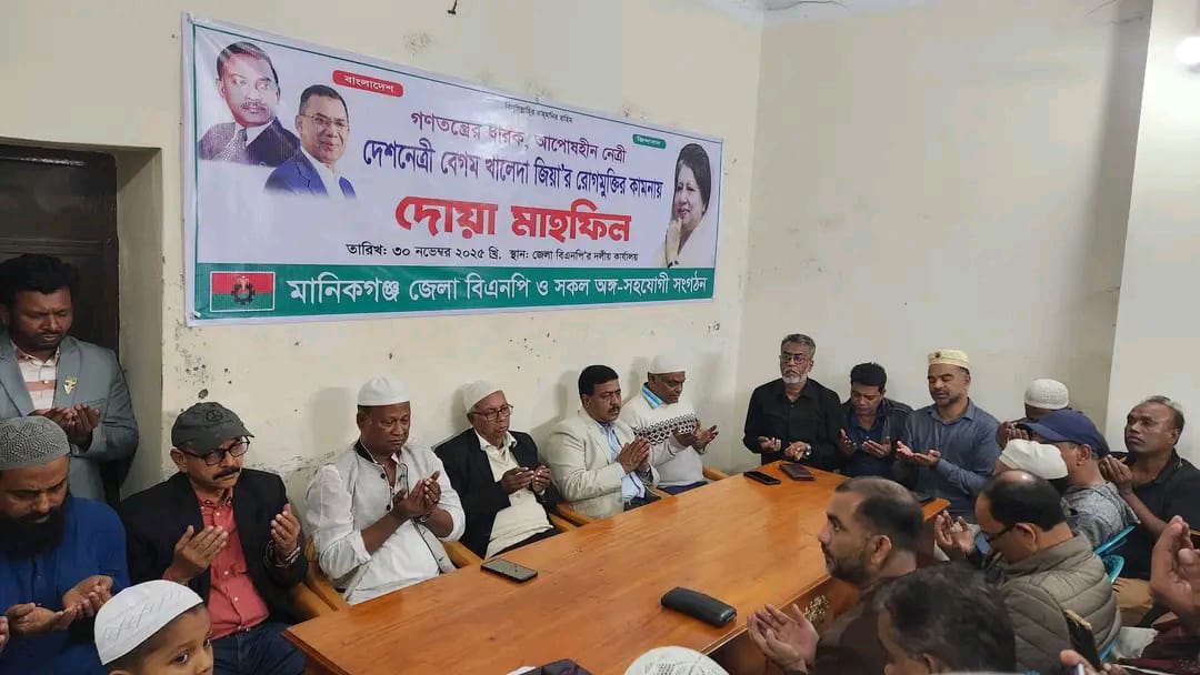 দেশনেত্রী বেগম খালেদা জিয়ার রোগমুক্তি ও দীর্ঘায়ু কামনায় মানিকগঞ্জে দোয়া মাহফিল অনুষ্ঠিত।