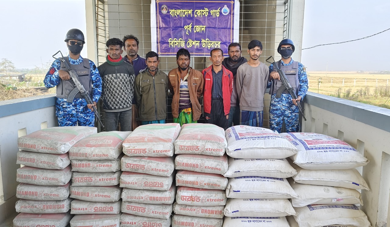 মায়ানমারে পা'চারকালে বিপুল পরিমাণ সিমেন্ট ও ময়দাসহ ৭ পা'চারকারীকে আটক করেছে কোস্ট গার্ড।