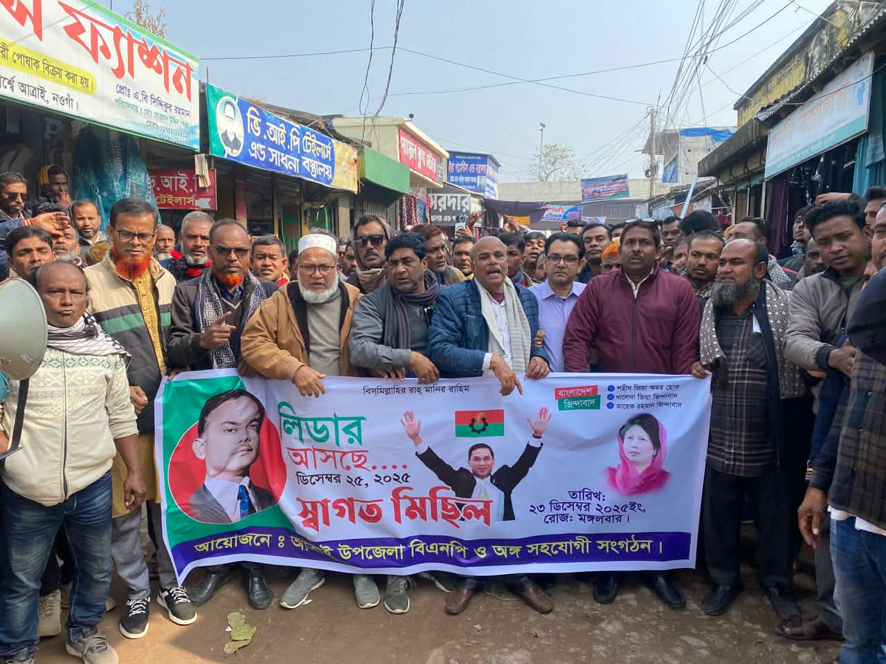 নওগাঁ আত্রাইয়ে তারেক রহমানের স্বদেশ প্রত্যাবর্তন উপলক্ষে বিএনপির আনন্দ মিছিল