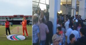 তবে এ ঘটনায় টানটান উত্তেজনা দেখা দেয় দর্শকদের মধ্যে। হঠাৎ করে কেন ঘোষণা করা হলো স্থগিত বিপিএল এর ম্যাচ ছুটি জানতে চায় তারা। কথা কাটাকাটির এক পর্যায় উত্তেজিত এক শ্রেণীর দর্শক ও জনতা স্টেডিয়ামের গেইট ভাঙচুরের চেষ্টা করে।