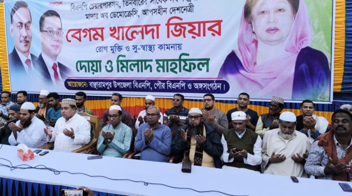 বাঞ্ছারামপুরে বিএনপি’র চেয়ারপার্সন ও সাবেক প্রধানমন্ত্রী দেশনেত্রী বেগম খালেদা জিয়ার রোগমুক্তি কামনায় দোয়া মাহফিল ব্রাহ্মণবাড়িয়ার বাঞ্ছারামপুরে বিএনপির চেয়ারপারসন ও তিনবারের সাবেক প্রধানমন্ত্রী বেগম খালেদা জিয়ার রোগমুক্তি ও সুস্বাস্থ্য কামনায় দোয়া