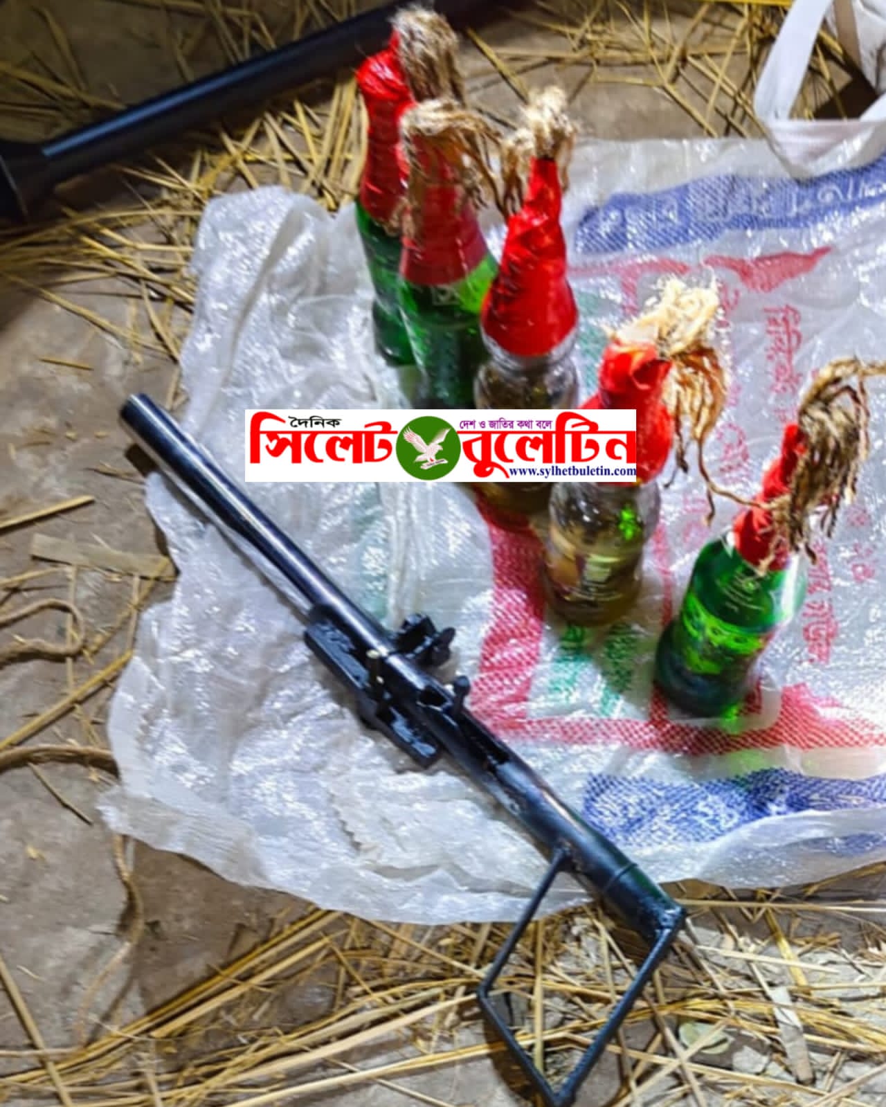 আইনশৃঙ্খলা স্বাভাবিক রাখতে নজরদারী :: সিলেটের শপিং ব্যাগে মিললো দেশীয় ওয়ান শুটার পাইপ গান ওপাঁচটি পেট্রোল বোমা