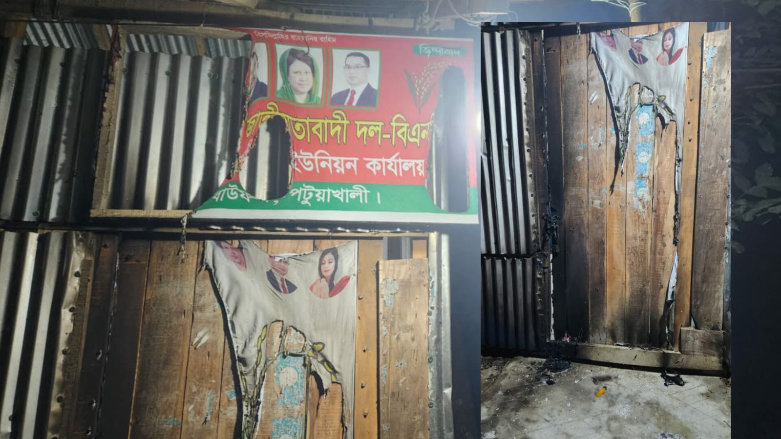 বাউফলে ইউনিয়ন বিএনপির কার্যালয়ে পেট্রোল ঢেলে অগ্নিসংযোগের অভিযোগ