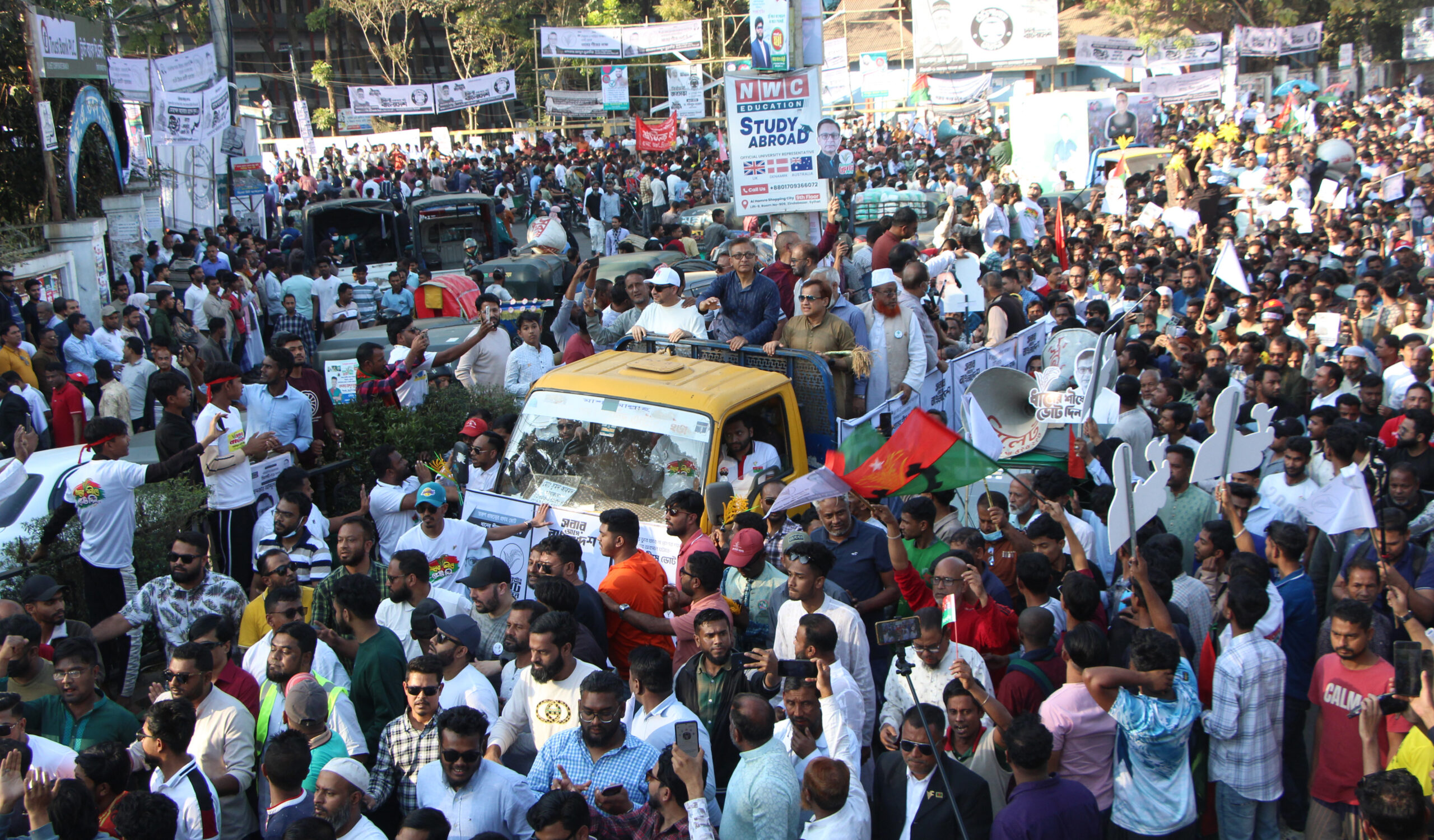 গতকাল সোমবার (৯ ফেব্রুয়ারি) বিকাল সাড়ে ৩টায় সিলেট নগরীর আলিয়া মাদরাসা মাঠ থেকে শুরু হয় মিছিল। ধানের শীষ প্রতীকের প্রার্থী খন্দকার আব্দুল মুক্তাদিরের নেতৃত্বে মিছিলে বিএনপি, ছাত্রদল, যুবদল, স্বেচ্ছাসেবকদল, কৃষকদল, শ্রমিক দল, মহিলা দলসহ অঙ্গ ও সহযোগী সংগঠনের বিভিন্ন পর্যায়ের নেতাকর্মী অংশগ্রহণ করেন। তবে সব ছাপিয়ে বিভিন্ন শ্রেণি-পেশার সাধারণ মানুষের স্বতঃস্ফূর্ত অংশগ্রহণ সবার দৃষ্টি কাড়ে। মিছিল শেষে খন্দকার মুক্তাদির নিজের বক্তব্যে বলেন, তিনি ক্ষমতার জন্য নয়, বরঞ্চ এ এলাকার মানুষের দায়িত্ব নেওয়ার জন্যই ভোটের মাঠে নেমেছেন।