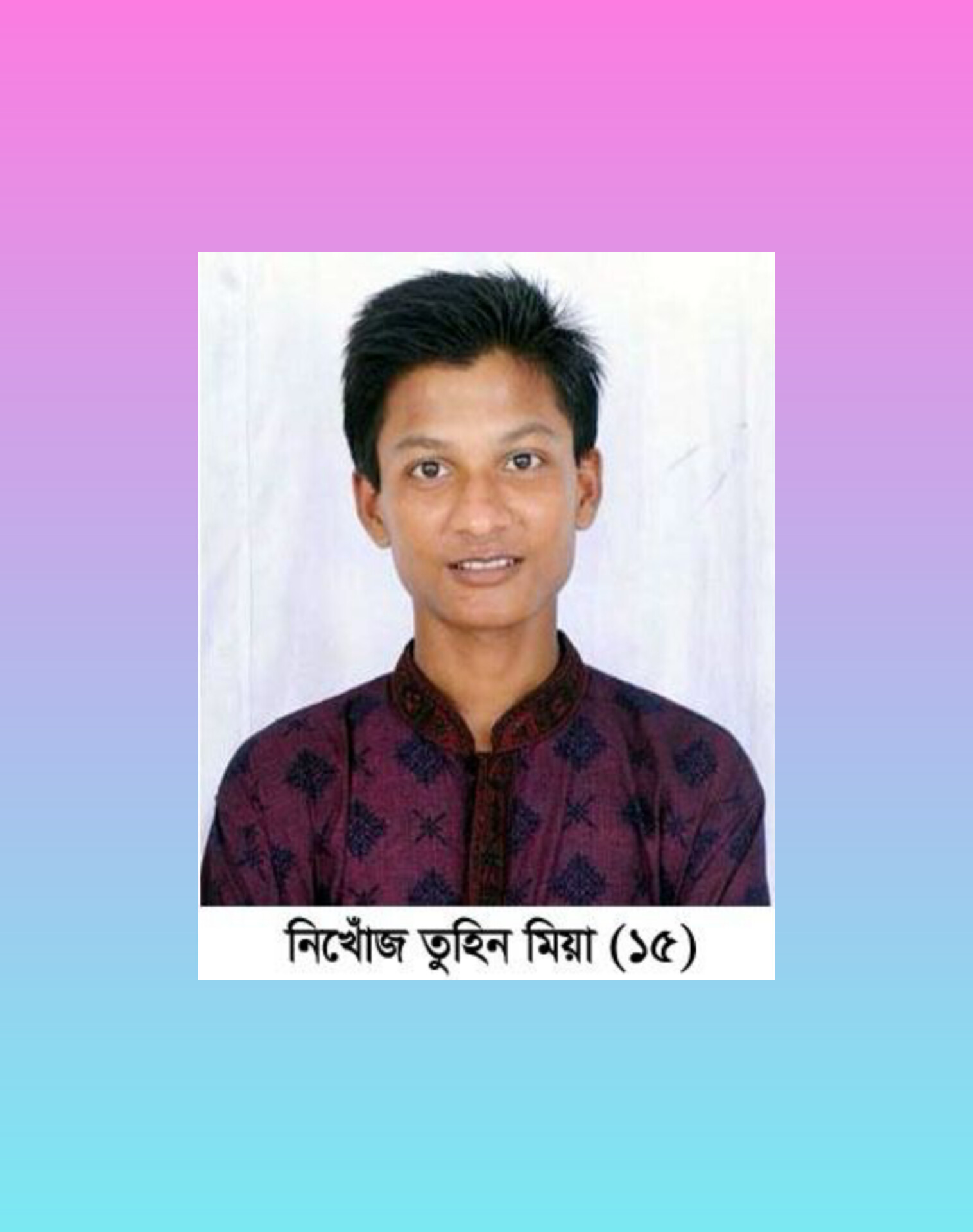 সিলেট নগরীতে ৮ ধরে কিশোর তুহিন নিখোঁজ