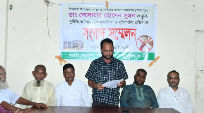 উপজেলা স্বাস্থ্য কর্মকর্তা’র দুর্নীতি, অনিয়ম, স্বেচ্ছাচারিতা ও লুটপাটের প্রতিবাদে সংবাদ সম্মেলন বিশ্বনাথ (সিলেট) প্রতিনিধি::: সিলেটের বিশ্বনাথ উপজেলা স্বাস্থ্য ও পরিবার পরিকল্পনা কর্মকর্তা (ভারপ্রাপ্ত) ডা: দেলোয়ার হোসেন সুমন কর্তৃক দুর্নীতি,