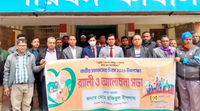 গোলাপগঞ্জ উপজেলায় পালিত হলো জাতীয় সমাজসেবা দিবস ২০২৬ কামাল খান :: উপজেলা সমাজসেবা কার্যালয় গোলাপগঞ্জের উদ্যোগে যথাযোগ্য মর্যাদা ও উৎসবমুখর পরিবেশে জাতীয় সমাজসেবা দিবস ২০২৬ উদযাপন করা হয়েছে। শনিবার (৩