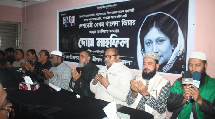 বেগম খালেদা জিয়ার রুহের মাগফেরাত কামনায় সিলেট জেলা তাঁতীদলের দোয়া মাহফিল স্টাফ রিপোর্টার:: ৩ বারের সাবেক প্রধানমন্ত্রী মরহুমা বেগম খালেদা জিয়া এবং সাবেক রাষ্ট্রপতি শহীদ জিয়াউর রহমান ও আরাফাত